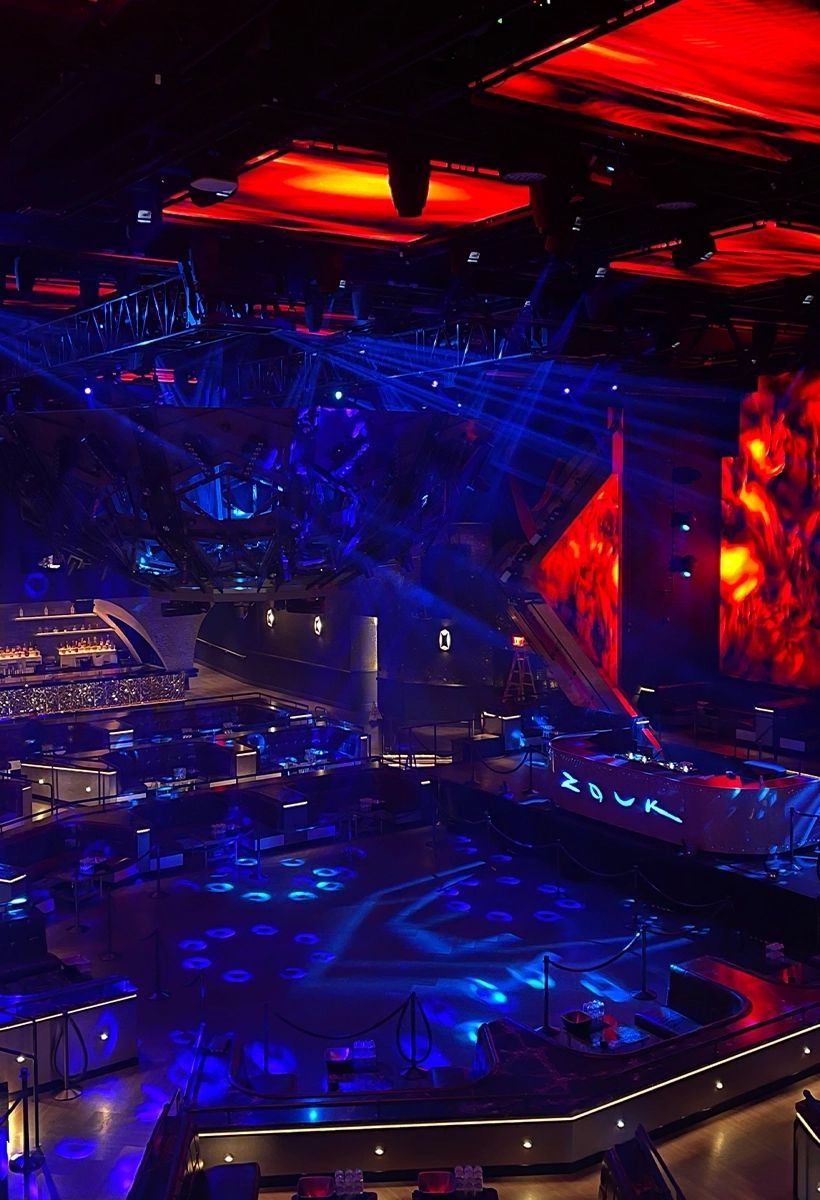 In 2021 Trust Fall Technology Group collaborated with Zouk Nightclub for its latest offering in Las Vegas, NV, a city renowned for its vibrant and energetic nightlife scene. The focus of this partnership was on enhancing the nightclub’s ambiance through innovative technology and creative design.